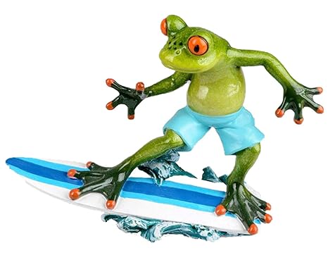 Dekojohnson Dekofigur Lustiger Dekofrosch Als Surfer Hellgrun